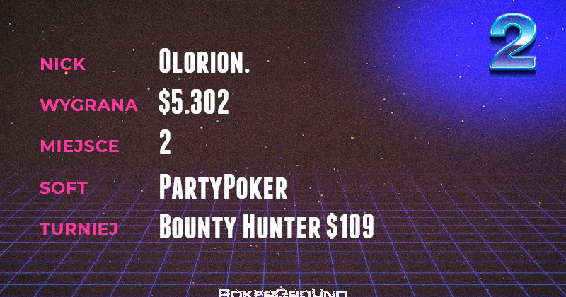 „Nasi” poczynali sobie przyzwoicie również na platformie PartyPoker. Tu z kolei, najlepszym wynikiem może pochwalić się wicelider rankingu Olorion.. Został on runner-up w rozgrywce Bounty Hunter $109, dzięki czemu do jego portfela wpadło $5.302.