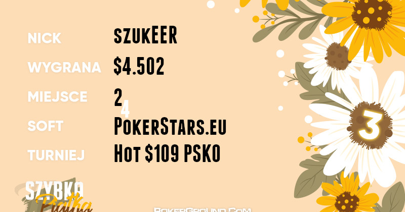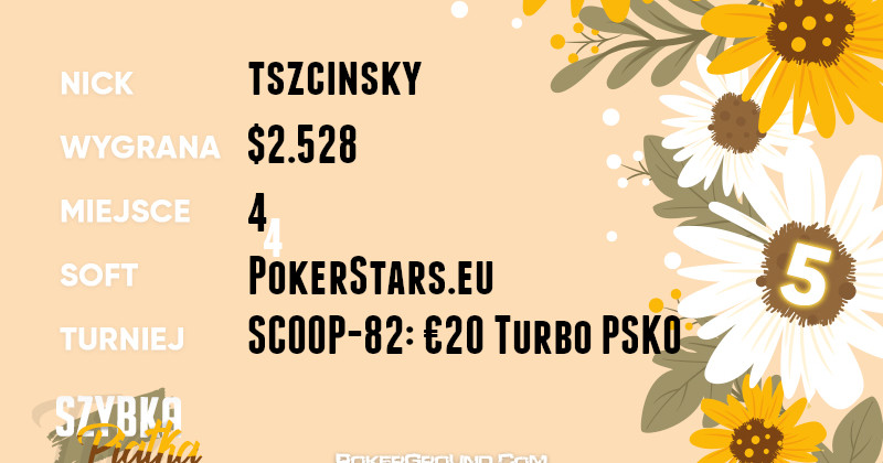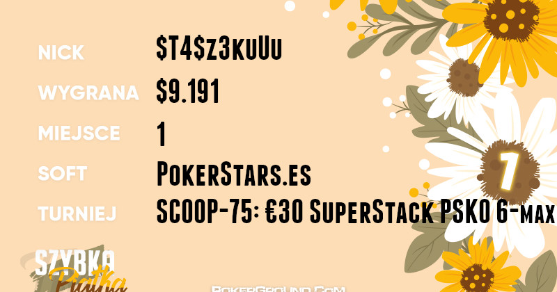 Przechodząc do szczegółów wczorajszych wydarzeń, najlepiej poradził sobie gracz o nicku $T4$z3kuUu. Odprawił on z kwitkiem wszystkich rywali w rozgrywce SCOOP-75: €30 SuperStack PSKO 6-max i z dumą mógł patrzeć, jak jego konto zasila kwota $9.191.