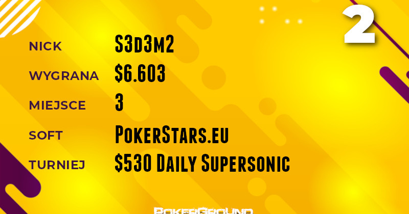 Lider zestawienia zgarnął łącznie około siedemnastu tysięcy dolarów, a najważniejsze rozstrzygnięcia zapadłay w turniejach $530 Daily Supersonic i $530 Bounty Builder HR. Tam nasz reprezentant zainkasował dwukrotnie ponad sześć tysięcy zielonych.