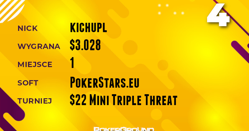 Najwyżej sklasyfikowanym graczem, który odniósł wczoraj zwycięstwo na wirtualnych stołach okazał się kichupl. Nie pozostawił on żadnych złudzeń rywalom w rozgrywce $22 Mini Triple Threat, za co otrzymał $3.028.