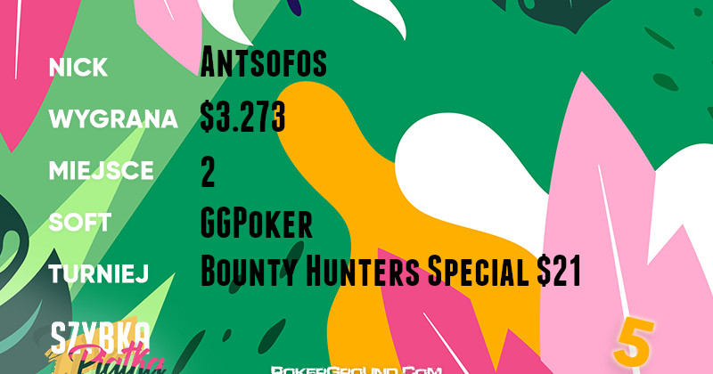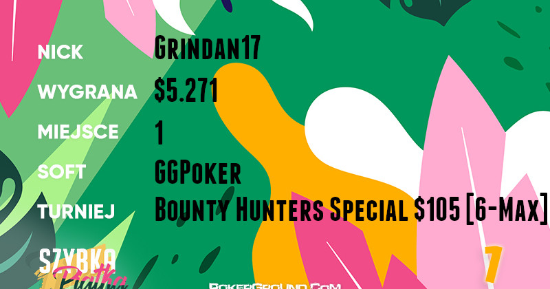Nieco ponad solidność wybija się lider rankingu o nicku Grindan17. Pokazał on kawał skilla w rozgrywce Bounty Hunters Special $105 [6-Max] na GGPoker, gdzie nie dał rywalom żadnych szans. Za swój wyczyn dopisał do bankrolla $5.271.