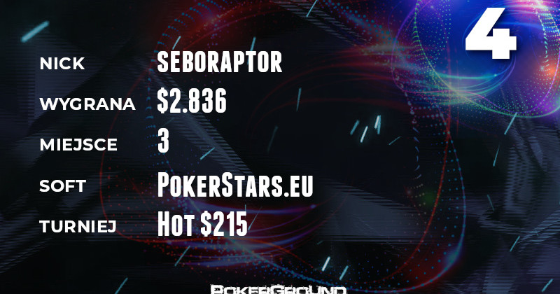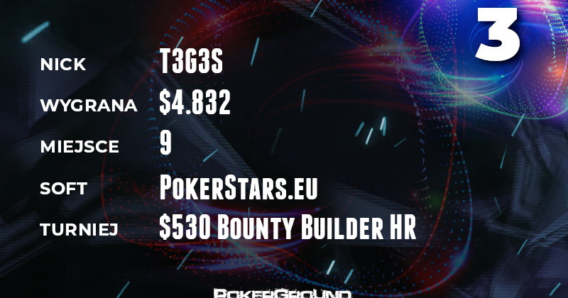 Na czele zestawienia melduje się schocer. Weteran naszych rankingów dotarł na finałowy stół rozgrywki $530 Daily Supersonic. Ostatecznie stanął na najniższym stopniu podium, a do jego kiszeni trafiło $7.614.