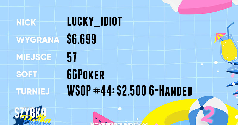 6-Handed. Najdalej z naszych reprezentantów zawędrował gracz o nicku lucky_idiot. Za pięćdziesiąte siódme miejsce zainkasował $6.699.