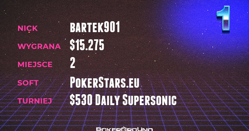 Kierownika dzisiejszego zamiesznia raczej nikomu nie trzeba przedstawiać. Bartek901, od początku istnienia naszych zestawień, stanowi ich permanentny element. Tym razem zgarnął $15.275, za zajęcie drugiego miejsca w rozgrywce $530 Daily Supersonic.