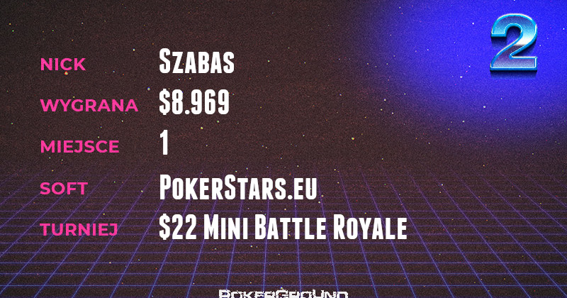 Drugie miejsce w rankingu należy do grindera o nicku Szabas. Pokonał on liczną konkurencję w turnieju Mini Battle Royale. Wpisowe $22 zamienił na wypłatę w wysokości $8.969.