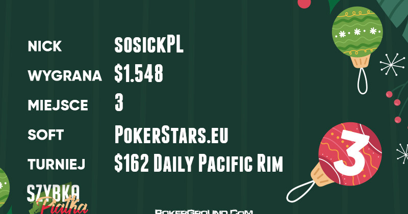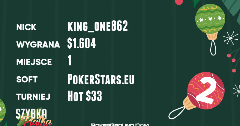 Drugim najlepszym wynikiem może pochwalić się king_one862. Nie dał on szans rywalom w rozgrywce Hot $33, a za wygraną $1.604 mógł jeszcze spokojnie udać się po szampana i fajerwerki.