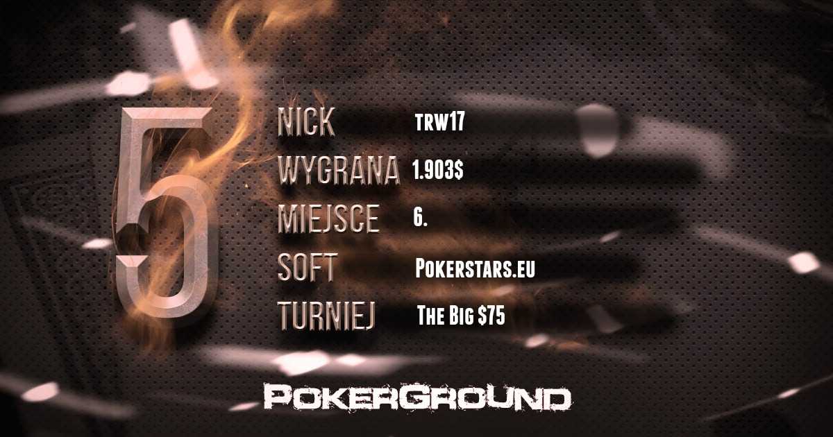 Na 5. miejscu w naszej klasyfikacji uplasował się trw17, który również znalazł się na finałowym stoliku w turnieju z tej serii. Niestety w końcówce zabrakło trochę szczęścia i nasz rodak ostatecznie zakończył grę na 6. miejscu, inkasując 1.903$.