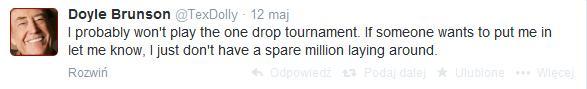 W evencie prawdopodobnie nie zobaczymy żywej legendy pokera Doyla Brunsona, który na Twitterze zamieścił wpis.