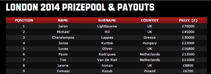 Brytyjczyk okazał się późniejszym zwycięzcą turnieju. W pojedynku heads-up pokonał rodaka Mike’a Hill. W ostatecznym rozdaniu jego