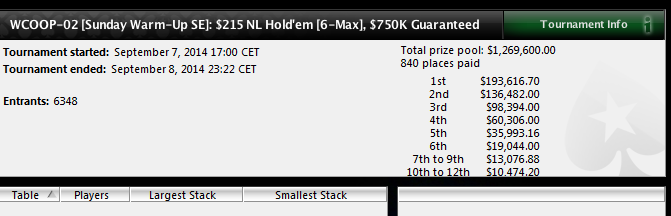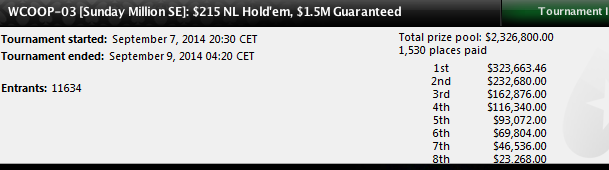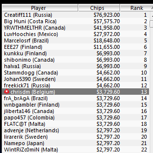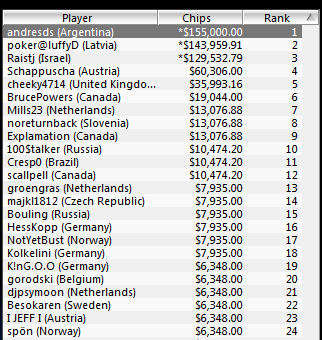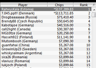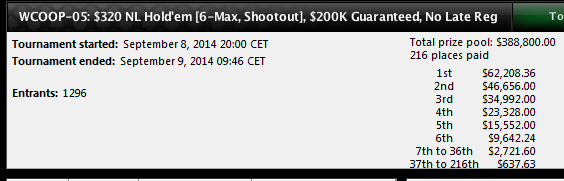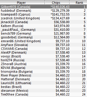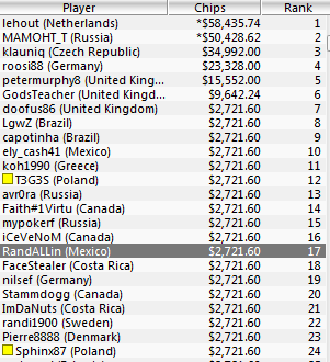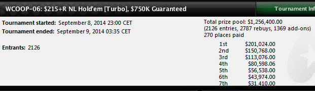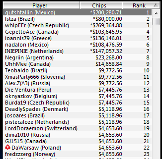 Najwyżej z Polaków w turnieju uplasował się Olorionek na 30 pozycji wygrywając 5,078$