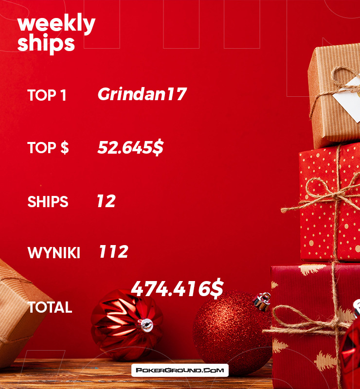 Zwycięzcą pierwszego Weekly Ships w nowym roku jest Grindan17, który za wygraną w turnieju WSOPC Series: $315 Bounty King Circuit – tyle że w edycji niedzielnej – zainkasował aż 52.645$.
