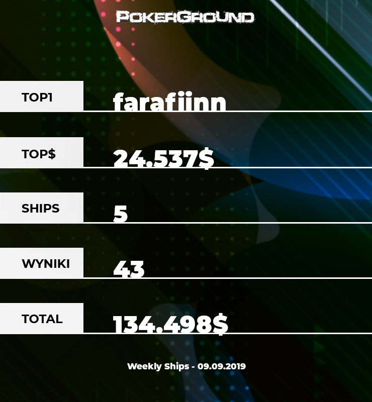 Skoro już jesteśmy przy Mistrzostwach Świata, najlepszy wynik minionego weekendu pochodzi z eventu 08-M 109$ NLHE tej serii.  Farafiinn, który zajął czwarte miejsce, zanotował przychód w wysokości 24.537$.