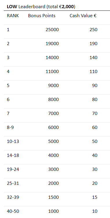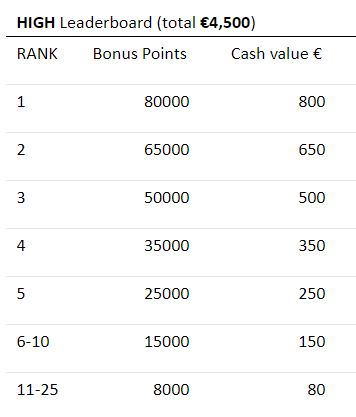 Rywalizacja została podzielona na 102 eventy. Wpisowe, jak zwykle, jest bardzo zróżnicowane i rozciąga się od stawek „nano” do „high”. Oprócz bogatego harmonogramu rozgrywek możecie spodziewać się aż pięciu leaderboardów, w których czekają na Was wspaniałe nagrody. To wszystko oraz turnieje niespodzianki dają graczom Unibetu dodatkowe 23.000€ w nagrodach.