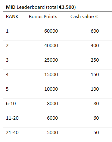Gracze podzielą między siebie 1.000€. |